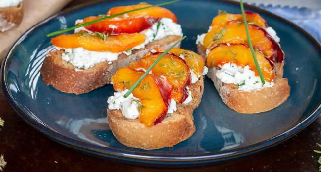 Tartines de pêches rôties et chèvres